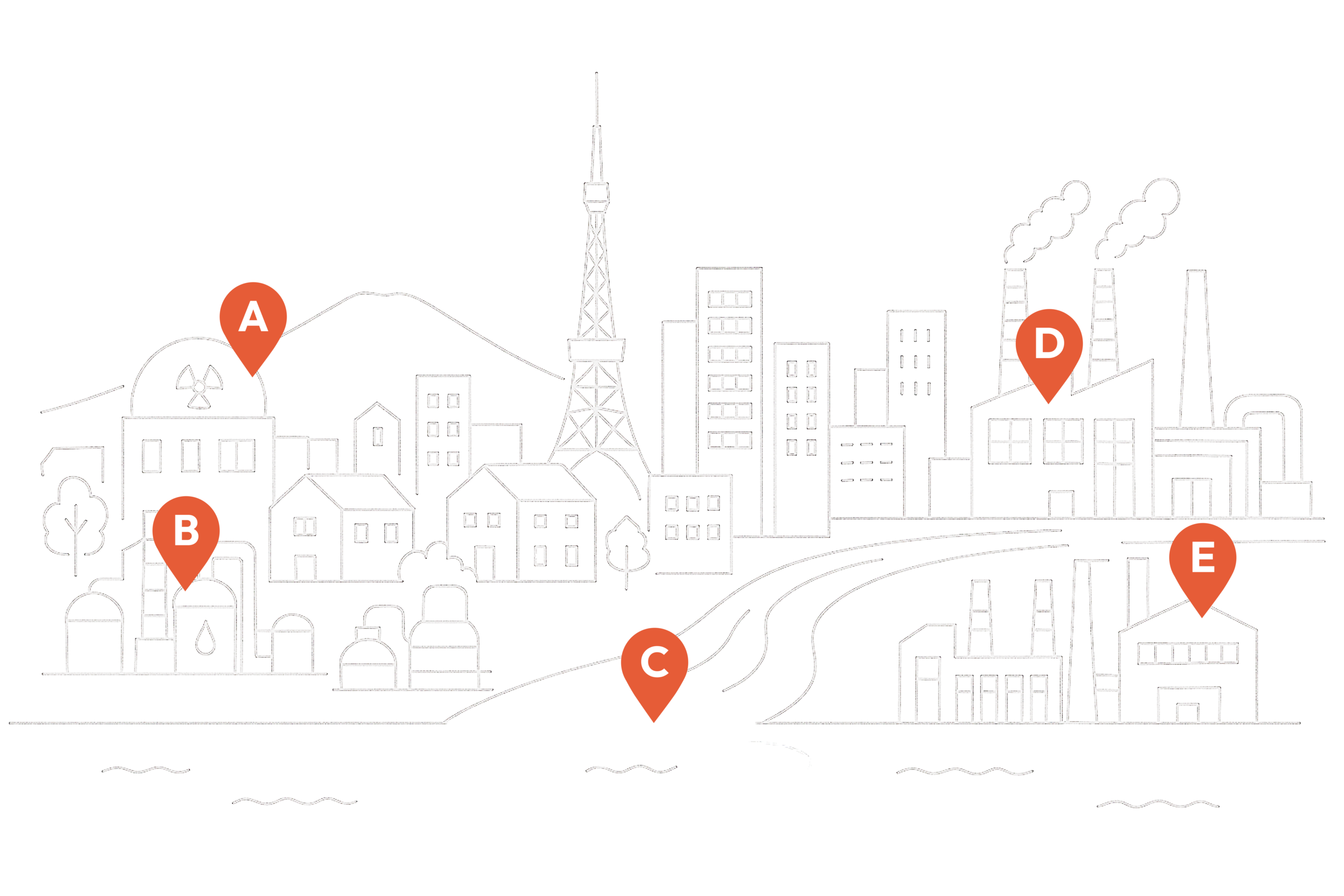 化学工場、製鉄工場、製紙工場の排水